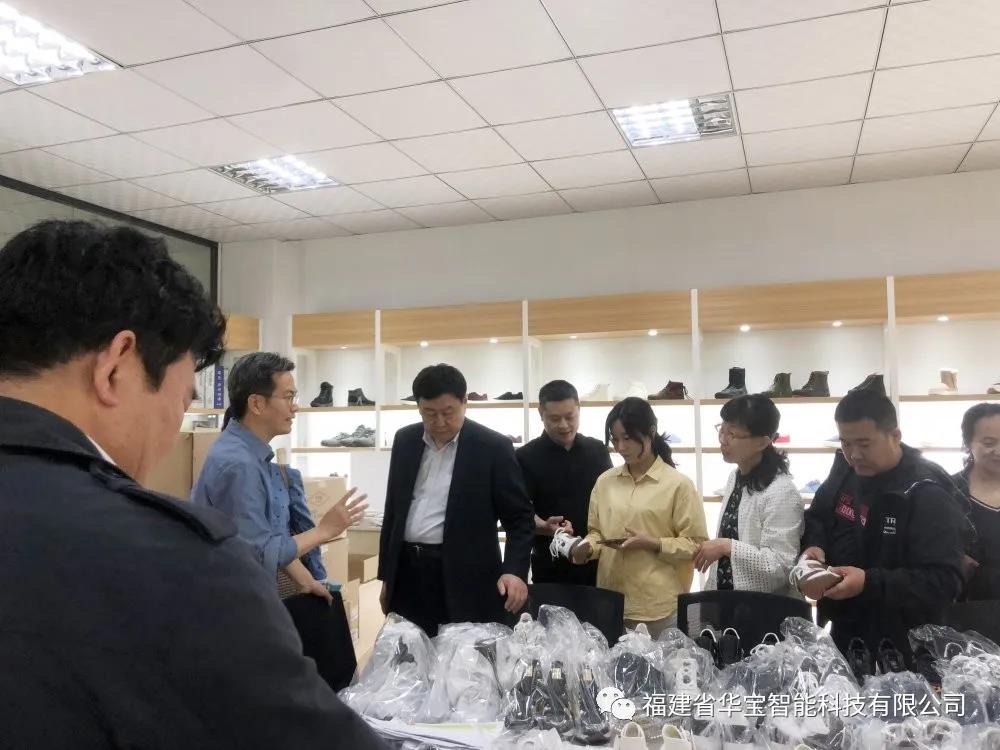 為加強行業技術交流,共謀科技創新高質量發展, 中國皮革協會李玉中理事長于 2021年4月19日率團前來華寶智能科技制鞋智能車間進行參觀交流。